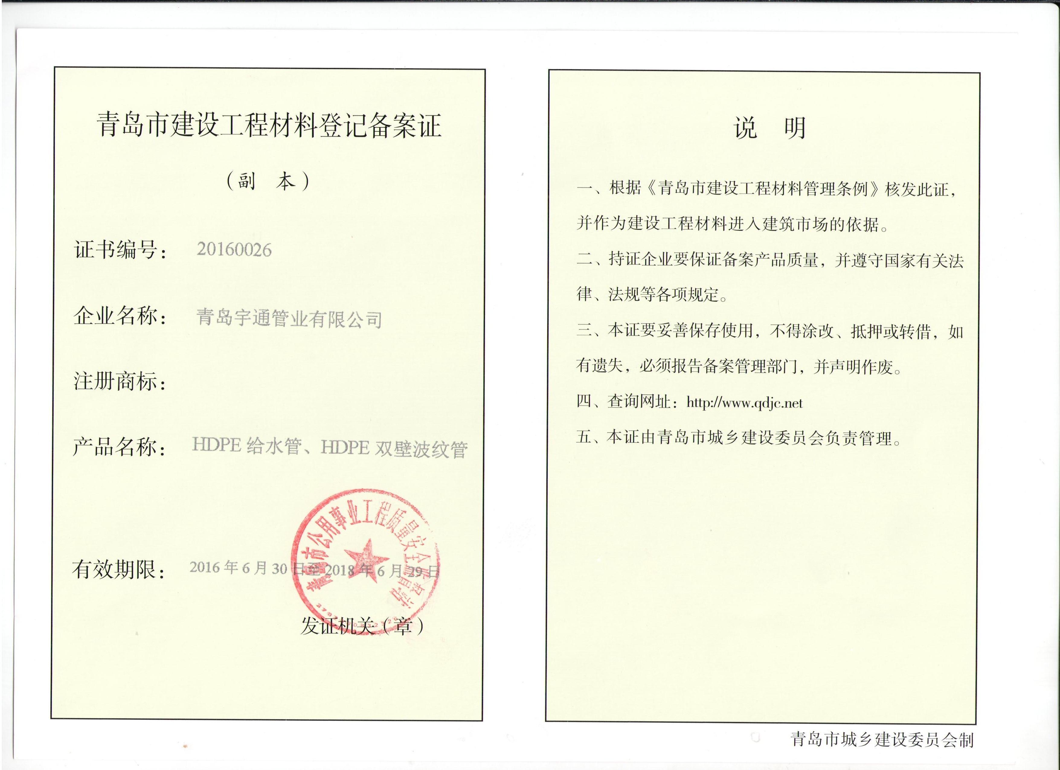 我公司是一家新型塑料管道、玻璃纖維增強(qiáng)塑料管道制造、銷(xiāo)售,自來(lái)水管道、污水管道、水暖管道安裝、設(shè)計(jì)、維護(hù),園林綠化工程施工,勞務(wù)分包、工程分包為一體的高新技術(shù)企業(yè)。公司成立于2008年2月,位于膠州市鋪集鎮(zhèn)中部工業(yè)園。