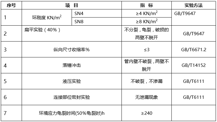 性能特點(diǎn)★耐化學(xué)性:不被污水、廢水及化學(xué)藥品腐蝕,不被土壤中腐爛物質(zhì)腐蝕。★抗沖擊性:管材壁采用“工字型”結(jié)構(gòu),耐沖擊,耐壓,地基下沉情況下也不破裂,而且變形后復(fù)原性強(qiáng)、對(duì)任何地基都有很好的適應(yīng)性。★耐老化:管材通常為黑色,可承受存放和施工過程中太陽(yáng)直曬。★耐寒性:管材在-80℃環(huán)境中不會(huì)被凍裂和膨脹漏水。★重量輕:便于運(yùn)輸,施工方便,是水泥管重量的1/8,埋管只需挖土機(jī),不需大型設(shè)備。★連接方便:管材可先在溝外連接,用挖土機(jī)推到溝中。在城市排水工程建設(shè)時(shí),可減少所需的工程時(shí)間和工程費(fèi)用。★耐磨性優(yōu)越:比鋼管、水泥管耐磨,生活水、廢渣通運(yùn)能力強(qiáng)。★排水流通性優(yōu)越:內(nèi)部光滑,減少摩擦,排水速度快。★經(jīng)濟(jì)性:原材料價(jià)位低,施工、管理、維護(hù)費(fèi)用低。★環(huán)境影響:HDPE是無(wú)毒性原料,對(duì)土地?zé)o害,并且完全能再生使用。